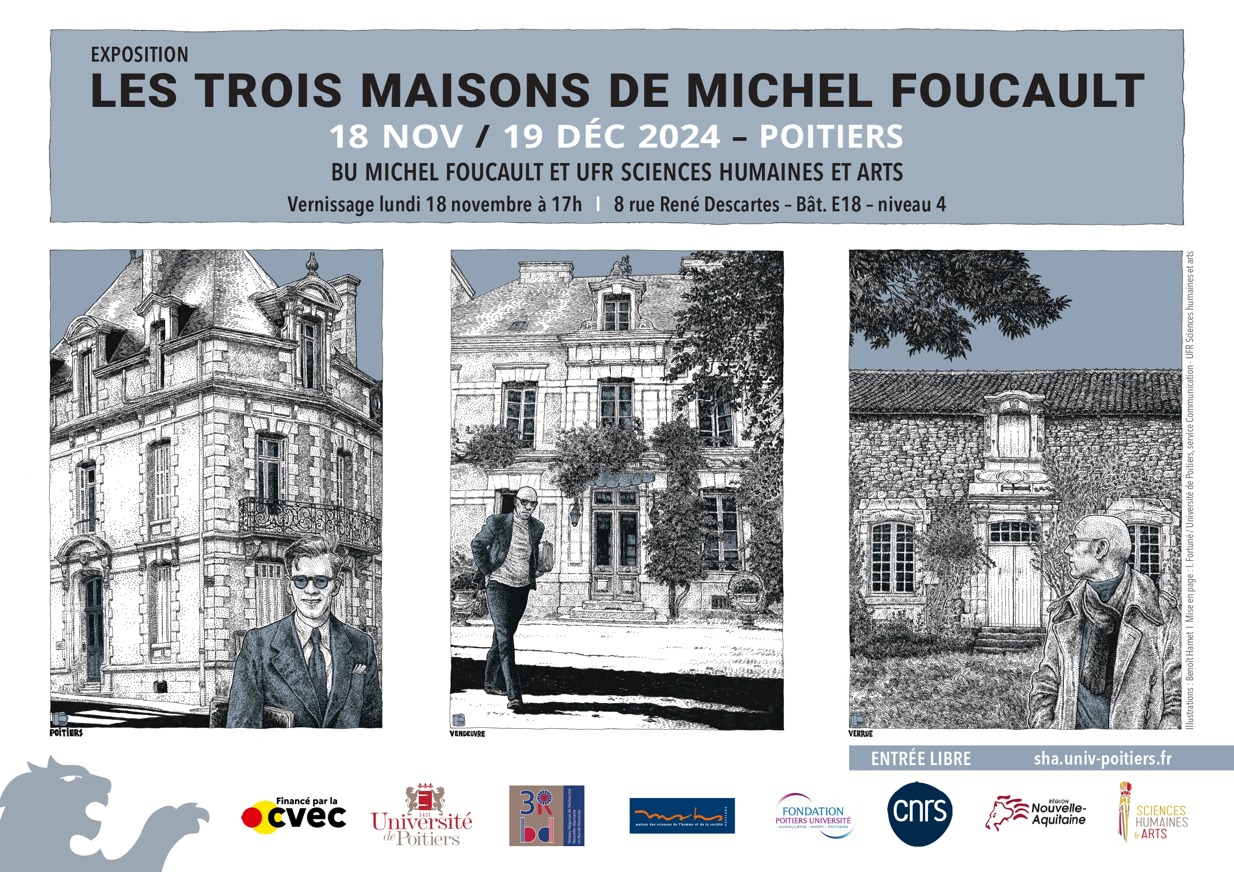 L’exposition les trois maisons de Michel Foucault se présente comme un récit graphique. Quarante ans après sa mort, elle apparaît comme une évidence. À la manœuvre, un dessinateur talentueux, Benoît Hamet, distingué par l’Unesco, et puis Irène Le Roy Ladurie, spécialiste du 9e art, Jean-Luc Terradillos, fin connaisseur de la présence de Michel Foucault à Poitiers et Frédéric Chauvaud, responsable scientifique du réseau de recherche en Nouvelle Aquitaine sur la bande dessinée.